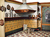 Gr. Rauchfangküche aus herrschaftlichem Haushalt, B: 133 cm, H: 67,5 cm, T: 87 cm, fest eingebauter Rauchfang, Erker mit Bleiverglasung, fest eingebaute Regale, kl. Brett am Regal fehlt, sehr schöne Orig.-Bemalung, Kachelmustermotiv, am Boden u. an den Wänden, wohl die prunkvollste Rauchfangküche die wir jemals versteigern durften, das Objekt ist mir seit frühester Jugend bekannt, es wurde auf dem Stadtfest in Ladenburg vor 40 Jahren an einen Sammler verkauft, 10 Minuten bevor ich am Stand des Verkäufers war, das Innenleben wurde leider separat veräußert, zu dem Käufer, einem bekannten Sammler, hatte ich einen guten Kontakt, dieser verkaufte das Objekt an einen Händler, dieser verkaufte es an Frau Ott aus Stuttgart, ein Leben lang hat mich das ungute Gefühl begleitet, ein paar Minuten zu spät gekommen zu sein (wer zu spät kommt, den bestraft das Leben), doch nun hat die Sache noch ein Happy End; wir dürfen Ihnen dieses Objekt in der Auktion anbieten, und so wird es nun nur eine kurze Zeit bei uns stehen, wir beglückwünschen den neuen Besitzer, dass er hier ein außergewöhnliches, museales Objekt, ersteigern konnte, ein paar Spannungsrisse an einer Wand (altersbedingt) ansonsten in hervorragendem Orig.-Zustand, einige Teile Zubehör, Provenienz: „ Sammlung Gerda Ott"