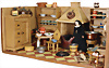Puppenstuben-Apotheke, B: 73 cm, H: 30 cm, T.: 30 cm, 2-tlg., seitl. einsetzbares Schaufenster, Schubladen mit geschwungenen Blechschildern, Orig.-Theke, reichh. Zubehör, Orig.-Bemalung an Wand u. Boden, ausgefallen, das Objekt befindet sich in der Schweiz, bei Einfuhr in die EU fallen Einfuhrumsatzsteuer u. Zollgebühren an