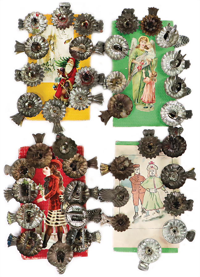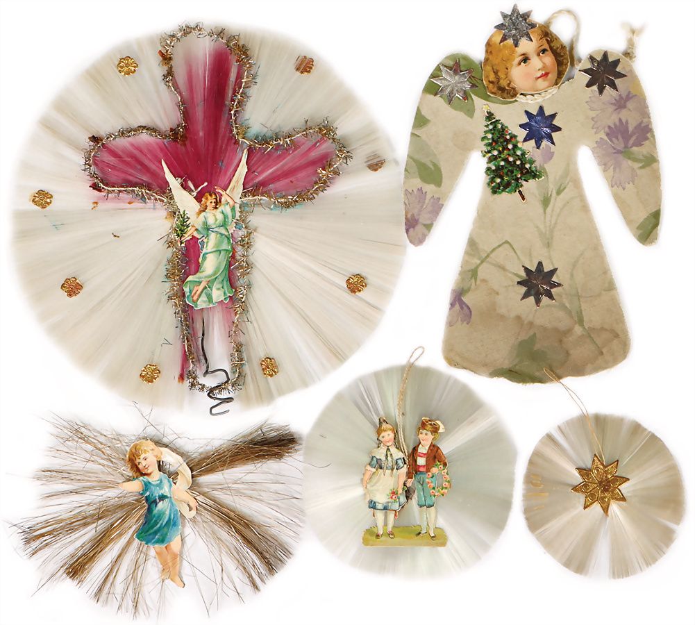 Christbaumschmuck, Pappe, Oblaten-Gesichter, Engel, Sterne mit Glasschweif