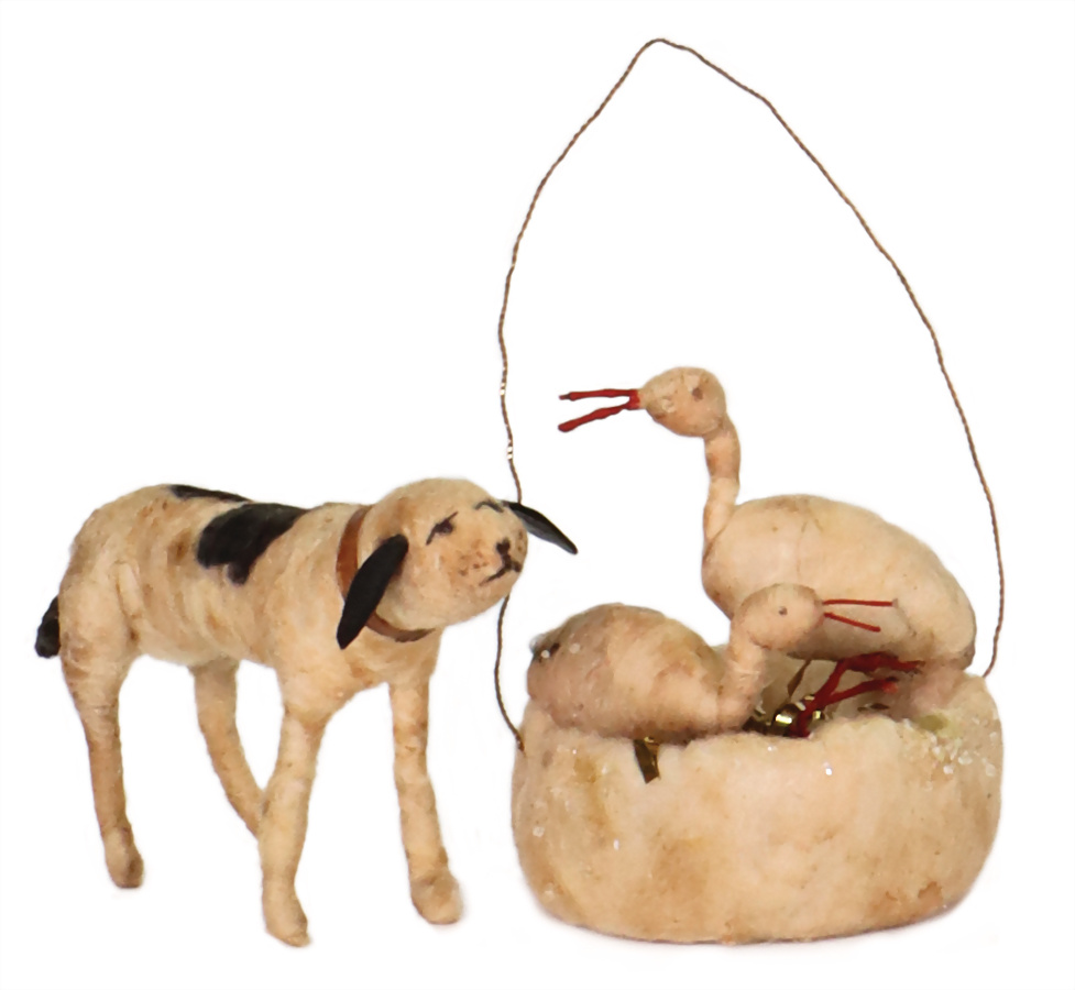 Christbaumschmuck, Watte, Hund, 10 cm, 1 Storchennest