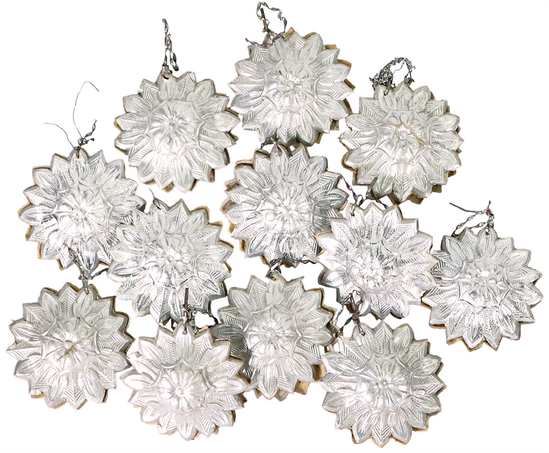 Konv. Weihnachtsschmuck, Pappe geprägt, wohl Dresden, Blüten, D: 7 cm, 12 Teile