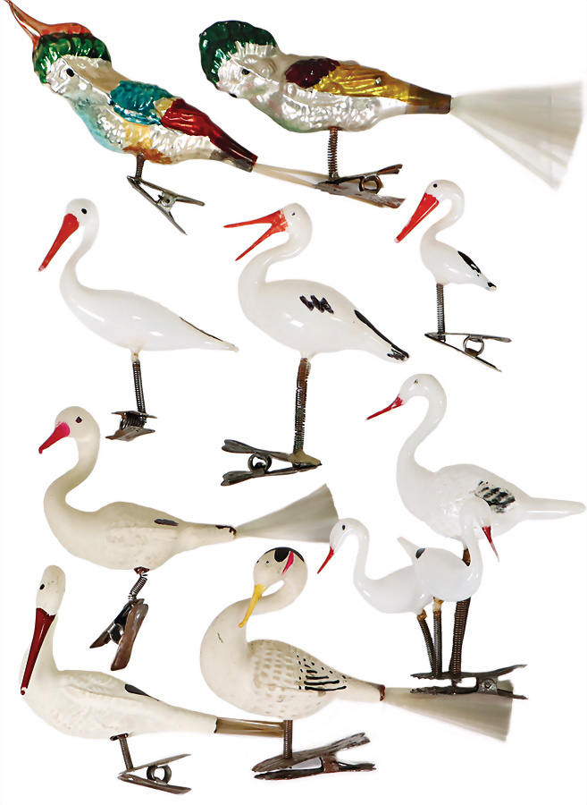 Christbaumschmuck, Störche mit Klammern, Milchglas, 2 Vögel, Spiegelglas mit Klammer
