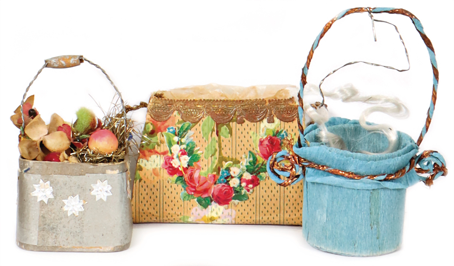Christbaumschmuck, Tasche, Candy-Container, wohl Dresden, H: 5,5 cm, 2 Körbe