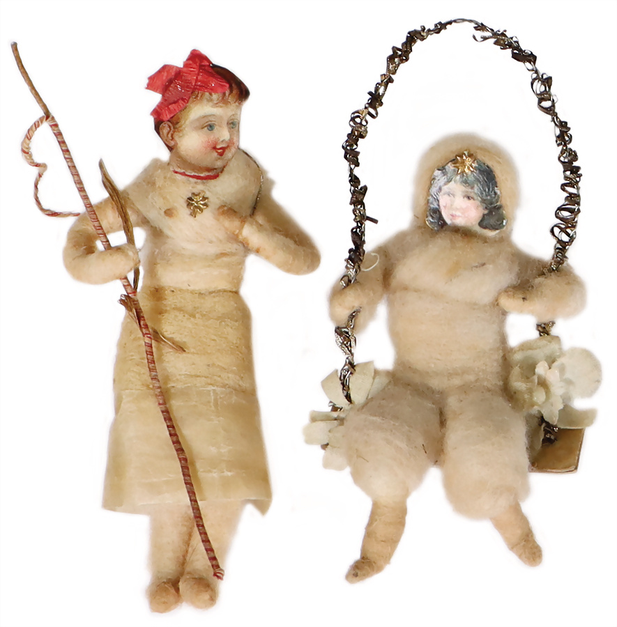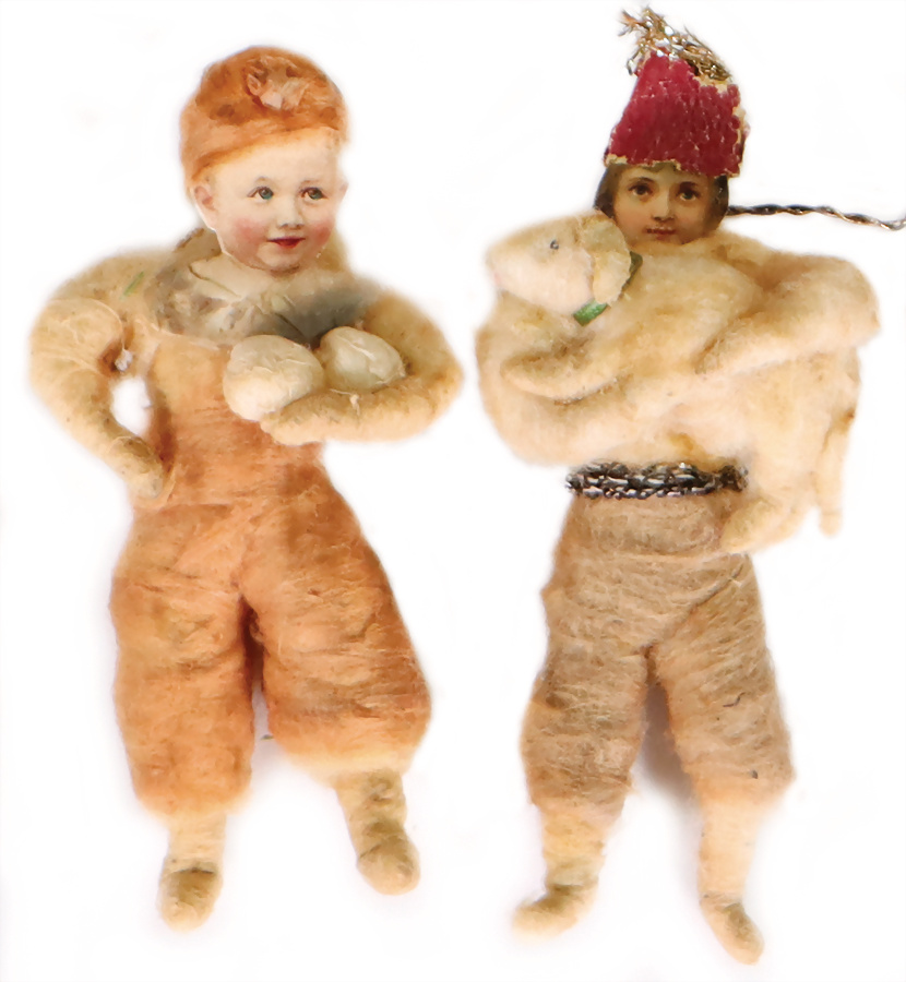 2 Teile, Christbaumschmuck, Watte, Kinder mit Oblatengesicht, 10 cm