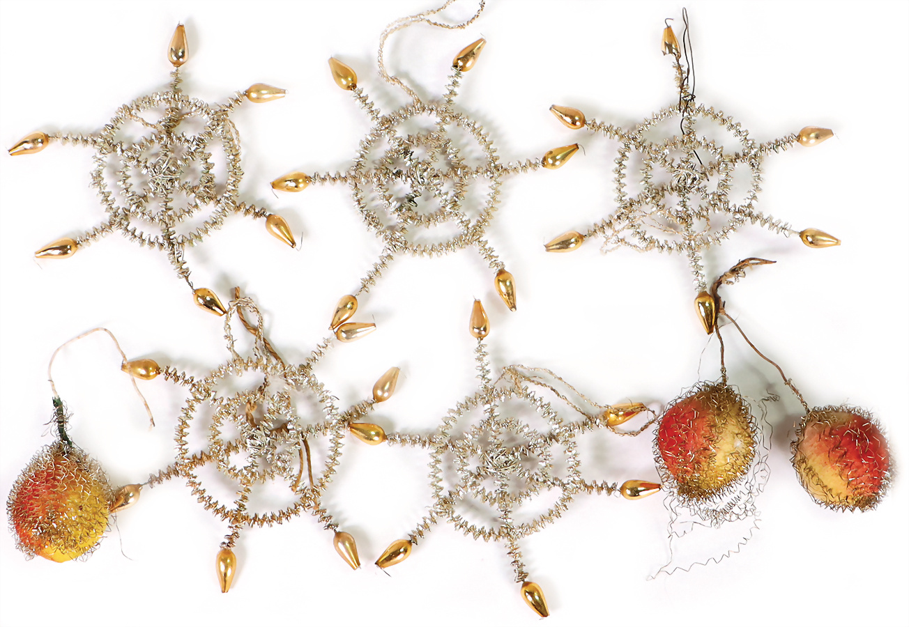 Christbaumschmuck, Sterne, Früchte, Draht, Glas, Watte, Leonische Drähte