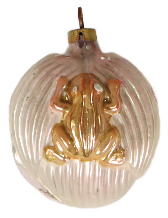 Christbaumschmuck, außergewöhnliche Glaskugel, Blüte mit Frosch, H: 6,5 cm, ausgefallen