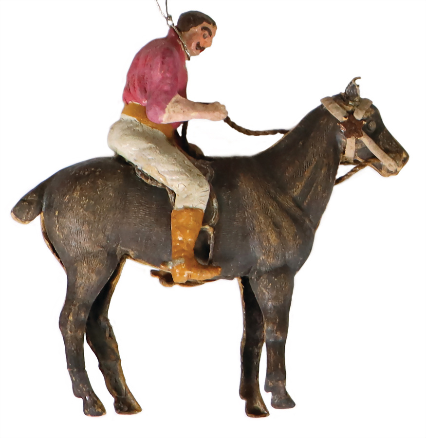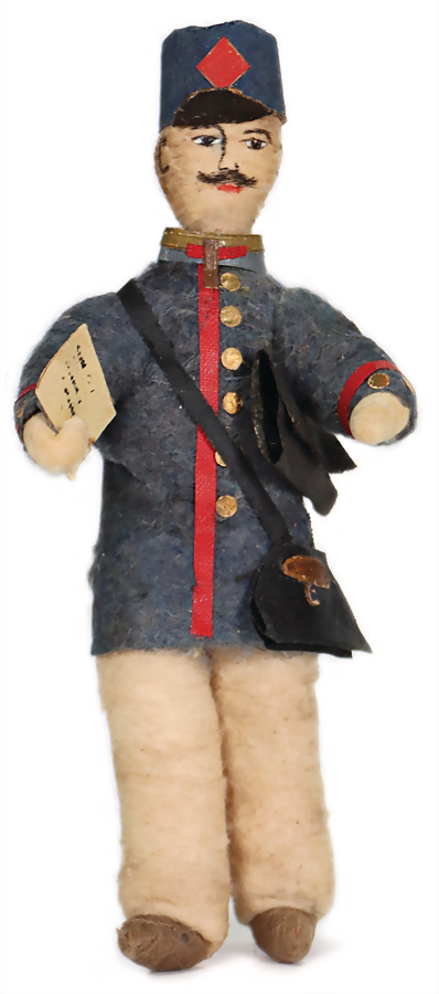 Christbaumschmuck, Watte, Postillon, Krepp-Hut, gemaltes Gesicht, in Uniform, mit Brief und Tasche, 15 cm