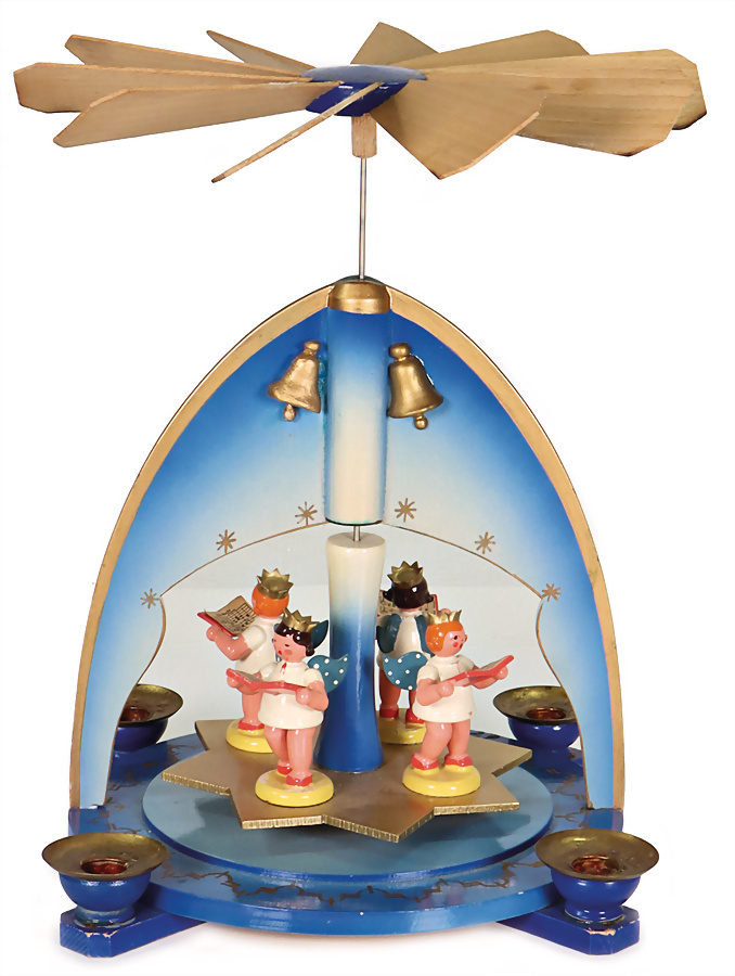 kleine Weihnachtspyramide, H: 27 cm, 4 Engel, ohne Kerzen