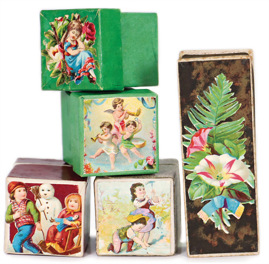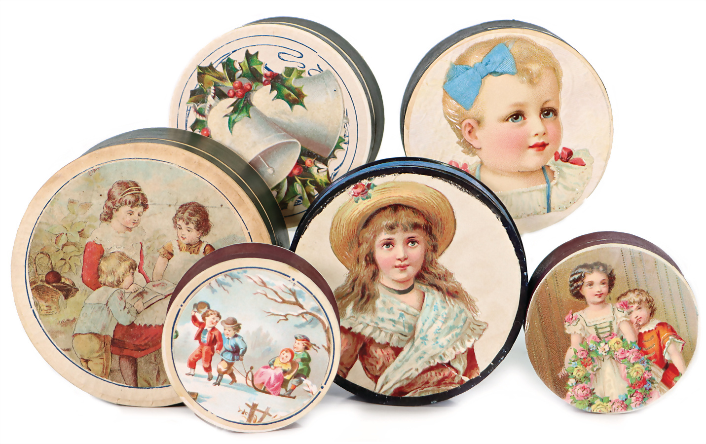 6 x Dosen, Candy-Container, Oblaten-Bilder, 7 cm - 9 cm