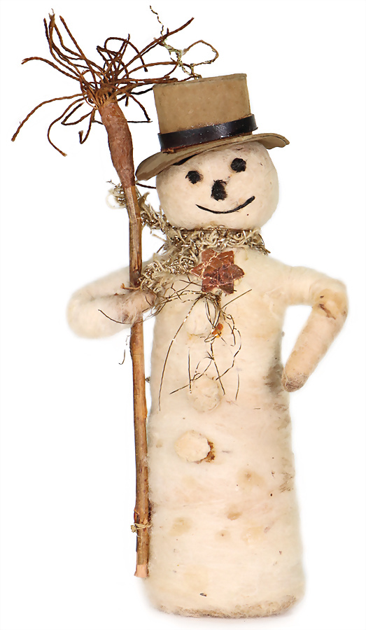 Christbaumschmuck, Watte, Schneemann, mit Zylinder und Besen, 14 cm