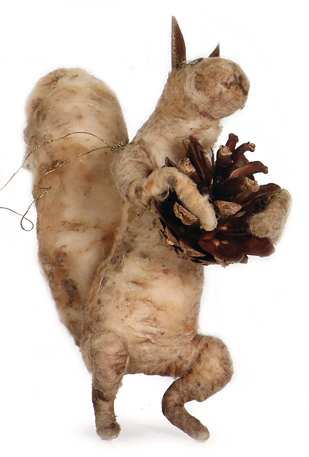 Christbaumschmuck, Watte-Eichhörnchen, stehend, mit Tannenzapfen, 10 cm