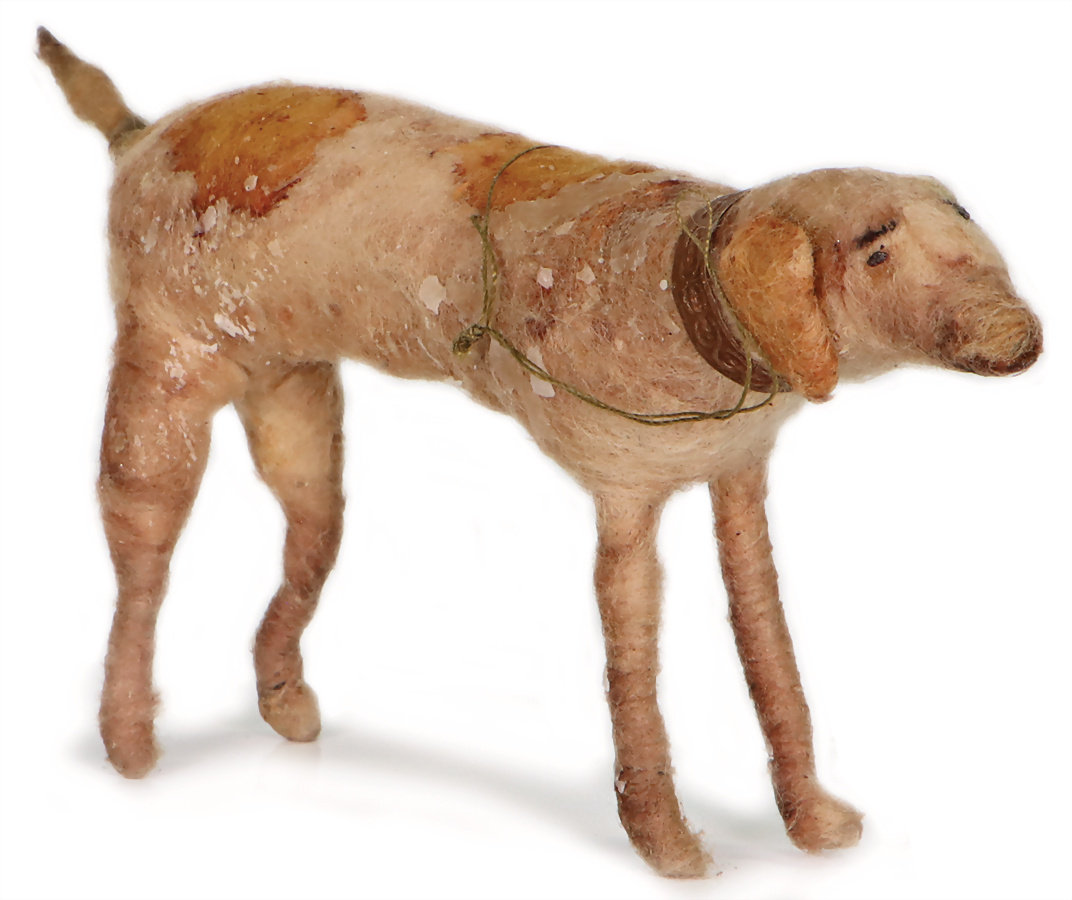 Christbaumschmuck, Watte-Hund, gemaltes Gesicht, mit Halsband, L: 13 cm, H: 7 cm