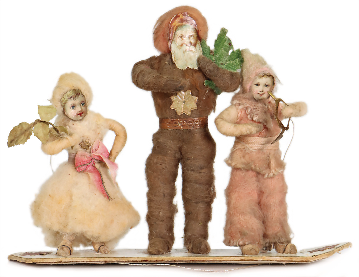 Weihnachtsdekoration Watte-Weihnachtsmann, um 1900, vermutlich russisch, bemaltes Masse-Gesicht, auf Holzplatte, 32 cm