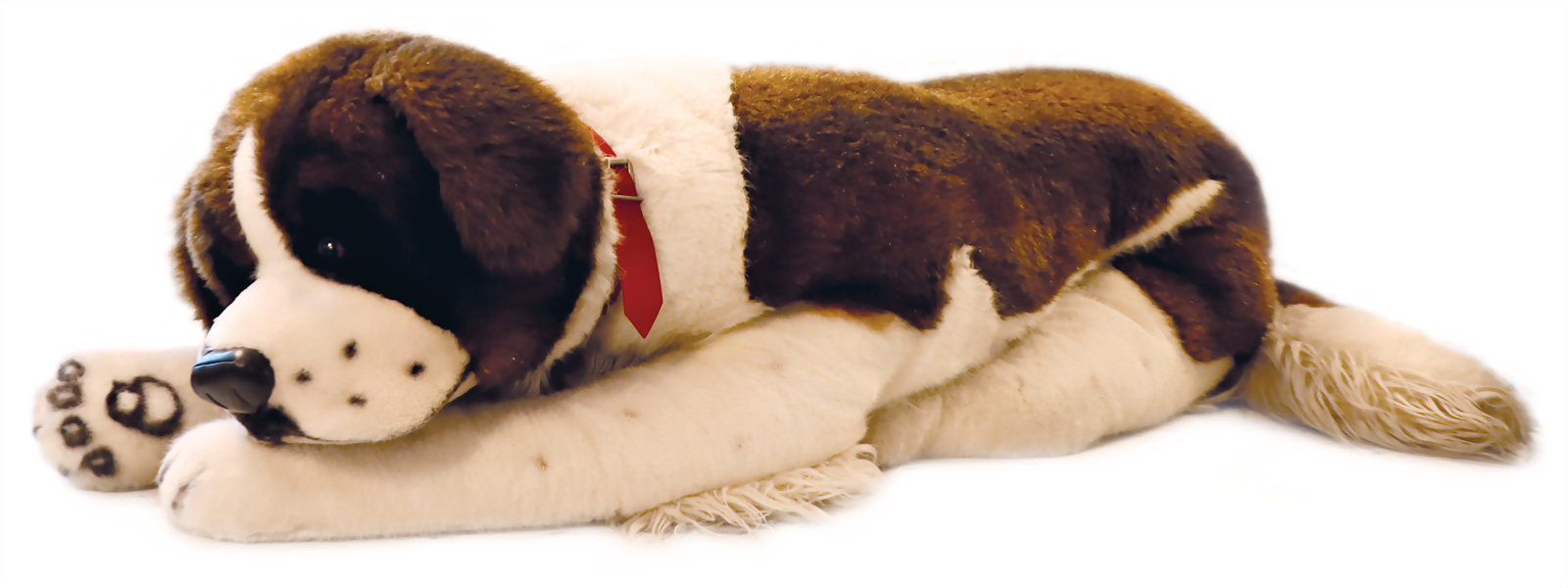 Studiotier, Bernhardiner, 130 cm, silberner Knopf, mit Fahne, Schrift auf Fahne PA56MASF73, ohne Schild, leicht eingestaubt, guter Zust.