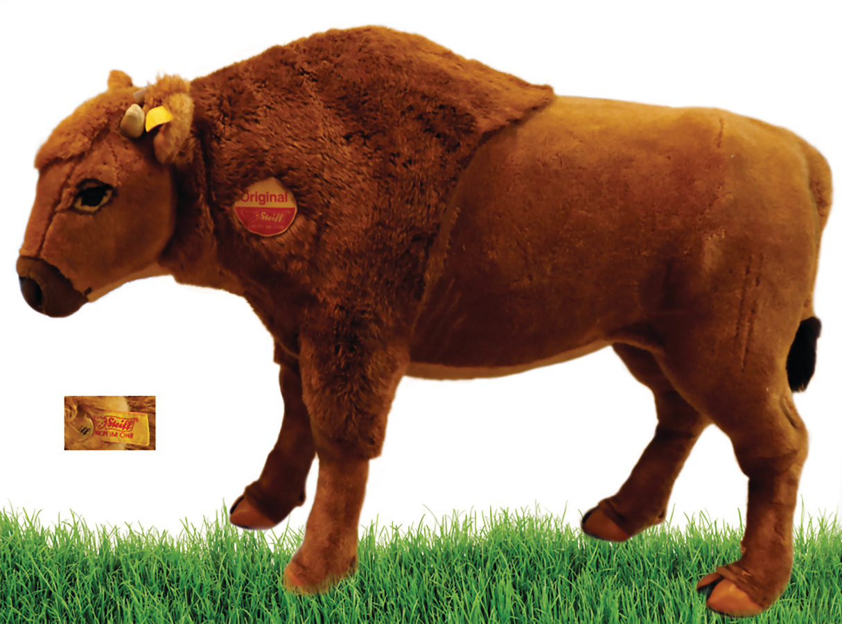 Studiotier, Kalb, gr. goldener Knopf, mit Fahne, fest aufgenähtes Schild, H: 100 cm, L: 137 cm, nur an Selbstabholer
