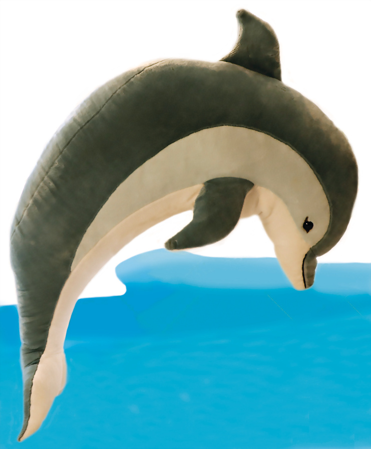Studiotier, Delphin, 94 cm, goldener Knopf, mit Fahne, guter Zust.