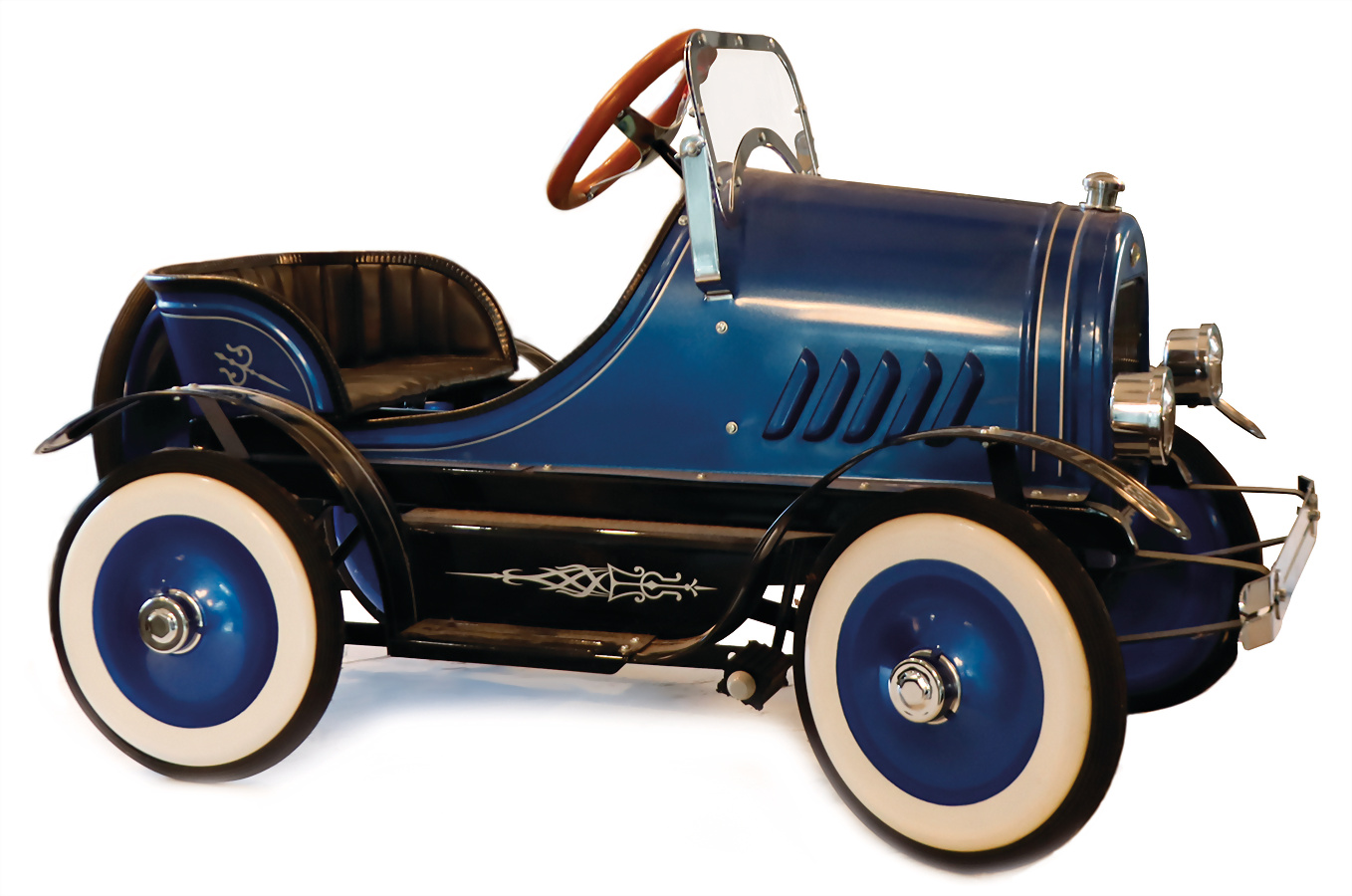 Tretauto, Neuanfertigung, ähnelt stark den STEIFF Tretautos, 95 cm, sehr schön gearbeitet, mit Holzlenkrad, umklappbarer Frontscheibe, Blech, lackiert, sehr guter Zust., schöne Deko für einen frühen Bären oder einfach zum Spielen, bitte Versandaufwand beachten, besser Selbstabholer