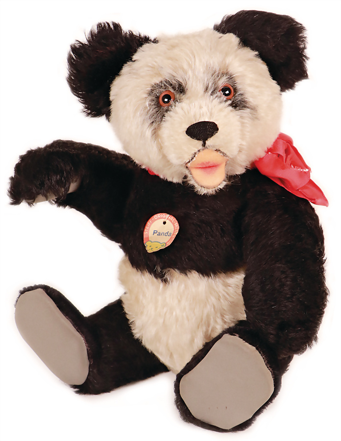 Panda, Nachkrieg, 37 cm, mit Schild ohne Knopf u. Fahne, Kunststofftatzen, sehr guter Zust., das Objekt befindet sich in der Schweiz, diese Artikel können abgeholt oder versandt werden, bei Einfuhr in die EU fallen Zoll u. Umsatzsteuer an, eine Verzollung kann auch persönlich vorgenommen werden, für Bieter außerhalb der EU gelten die dort üblichen Zollbedingungen