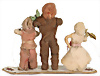 Christbaumschmuck, Watte, Christkind mit zwei kleinen Watte-Kindern, auf Pappe, mit Oblaten-Gesicht, H: 15 cm, L: 11 cm