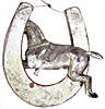 Pferd im Hufeisen, schöne filigrane Pappe-Arbeit, schöner Orig.-Zustand