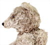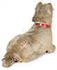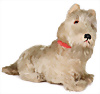 Sealyham, sitzend, hergestellt 1930-1939, mit Knopf, langgezogenes f, Sitz-Höhe: 22 cm, groß Glasaugen, langes Mohair an der Schnautze, etwas eingestaubt, orig., Lederhalsband