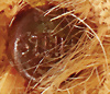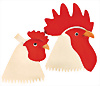 Eierwärmer, Filz-Hahnenkopf, hergestellt 1909-1926, mit Knopf und unbespielter weiße Fahne, Nr.: 77/4134, 14 cm, kleine Schuhknopfaugen, unbespielter Zustand, dazu Hennen-Kopf, Filz-Kopf, kleine Schuhknopfaugen, hergestellt 1909-19027, mit Knopf, Nr.: 77/4135, 12 cm, unbespielter Zustand