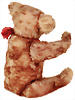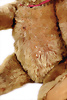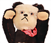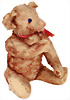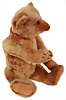 BULLY, hergestellt: 1931-1935, mit Knopf, langgezogenes f, große Glasaugen, sitzend, mit Halsdreh-Mechanik, leicht geöffnete Filz-Schnauze, Filzeinsatz in den Ohren, Sitzhöhe: 26 cm, teilweise mit Mohair-Verlust am Rücken, farblich etwas ausgeblichen