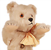 Bär, weiß oder gelb ausgeblichen, 31 cm, blanker Knopf, Mohair-Plüsch, teilw. ein wenig abgeliebt, Nasenbestickung abgerieben, ein wenig fleckig, das Objekt befindet sich in der Schweiz, diese Artikel können abgeholt oder versandt werden, bei Einfuhr in die EU fallen Zoll u. Umsatzsteuer an, eine Verzollung kann auch persönlich vorgenommen werden, für Bieter außerhalb der EU gelten die dort üblichen Zollbedingungen