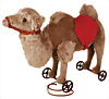 Kamel, ca. 1910, H: 34 cm, mit Knopf, langgezogenes f, Mohair-Plüsch, Schuhknopf-Augen, Guss-Speichenräder, das Objekt befindet sich in der Schweiz, diese Artikel können abgeholt oder versandt werden, bei Einfuhr in die EU fallen Zoll u. Umsatzsteuer an, eine Verzollung kann auch persönlich vorgenommen werden, für Bieter außerhalb der EU gelten die dort üblichen Zollbedingungen