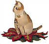 Samt-Katze, hergestellt: ca. 1900, auf floralem Tintenwischer, ohne Knopf, Samt etwas eingestaubt, mit orig. Seidenband und Glocke, selten