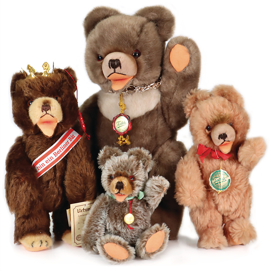 Fremdprodukt aus dem STEIFF Archiv, Teddy, 36 cm, Plüsch, weich gestopft, mit Stimme, Halskette u. Schild, HERMANN Teddy, 24 cm, mit Schild, 1 HERMANN, Teddy, Berliner Bär, 28 cm, limitierte Auflage 2000 St., Orig.-Verpackung, HERMANN Teddy, 18,5 cm, mit Schild, sehr guter Zust.