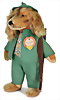 Waldili, stehend, mit Knopf, Schild und Fahne, Nummer: 7770,26, grüner Filzanzug, 23 cm, etwas ausgeblichen