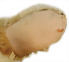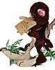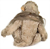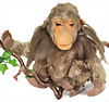 Pavian, "Made in US-Zone Germany", Filzgesicht, sowie Filz-Ohren, -Arme u. –Beine, Langmohair-Krause, mit Resten des Brustschilds, Aufschrift mit roter Schrift „Coco“, off. Stelle am Bauch, 30 cm, Zustand abgeliebt, Biegeschwanz