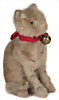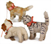 Fremdprodukt aus dem STEIFF Archiv, 3 Teile, Hund, 5-fach gegliedert, H: 8 cm, Katze, 5-fach gegliedert, H: 10 cm, 1 Katze auf 4 Pfoten stehend, wohl um 1940, Plüsch, Glasaugen, mit Papieranhänger, guter Zust.
