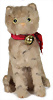 vermutlich Eduard Crämer Katze, sitzend, grüne Glasaugen, helle Nasenbestickung, Seidenschleife, 19 cm, leicht abgeliebt