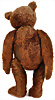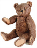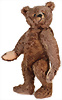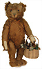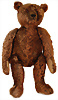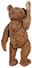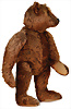 Bär, ca. 1910, 50 cm, dunkelbraun, Schuhknopfaugen, Filztatzen, 4 Krallen, kl. STEIFF Knopf mit langgezogenem f, lange abgeknickte Arme, ausgeprägter Buckel, spitze Schnauze, etw. gedrungene, frühe Form, 1 Filztatze ein wenig off., 1 Stelle an 1 Arm Mohair-Verlust, sonst sehr guter Zust. für die Zeit, schöner Ausdruck