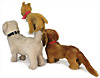 Fremdprodukt aus dem STEIFF Archiv, 2 Teile, Hunde, Langhaar-Plüsch, Glasaugen, wohl Vorkrieg, Hund auf 4 Pfoten stehend, H: 23 cm, mit Werksmuster-Anhänger, Hund, sitzend, H: 27 cm, guter Zust.