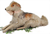 Fremdprodukt aus dem STEIFF Archiv, 2 Teile, Hund, 21 cm, Langhaar-Plüsch, Glasaugen, 1 Hund, Plüsch, Glasaugen, NORDISKA Stockholm, 1927, wurde am Rücken geöffnet u. Füllung entnommen, H: 25 cm