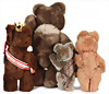 Fremdprodukt aus dem STEIFF Archiv, Bären, Nachkrieg, Kunstplüsch, Bär mit Bleiknopf, Glasaugen, 20 cm, Bär Typ Zotty, wohl HERMANN, 24 cm, Eli, LIEBERMANN, Coburg, Typ Zotty, Dralon, 28 cm, mit STEIFF Archiv-Anhänger, Bär, liegend, Eli, LIEBERMANN, Coburg, Glasaugen, H: 23 cm, mit Firmen- u. Archiv-Anhänger, guter Zust.