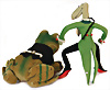 Nachkrieg, 2 Teile, STEIFF Kalle Stropp, Grashüpfer, Figur aus dänischer Kindergeschichte, Filz, 16 cm, mit Knopf u. Schild, 1 Kugel am Fühler fehlt, sonst sehr guter Zust., Grodan, Frosch, mit Knopf u. Fahne, Nr. schwach erkennbar 3412 W, 14 cm, ohne Schild, 1956, sehr guter Zust., selten