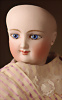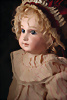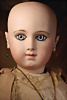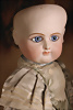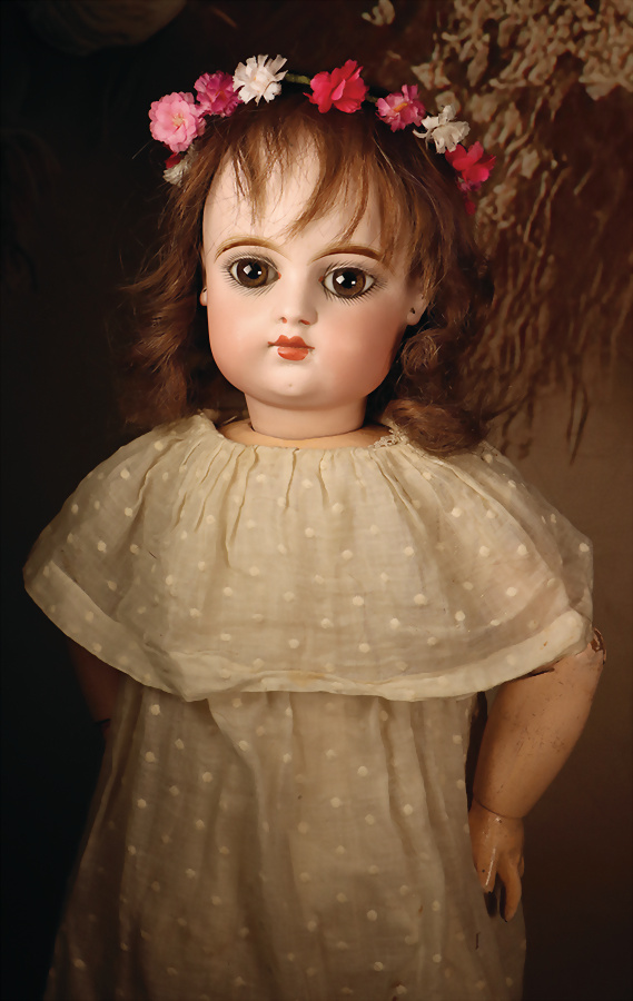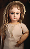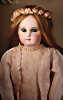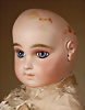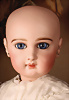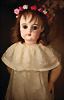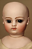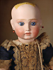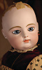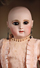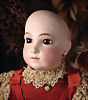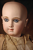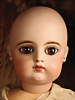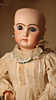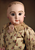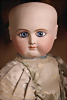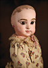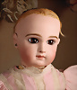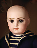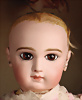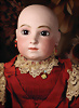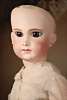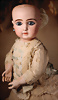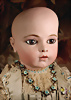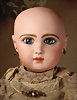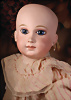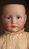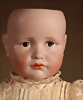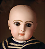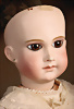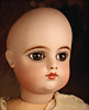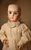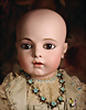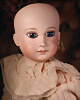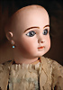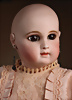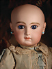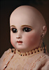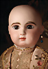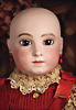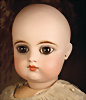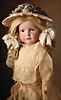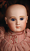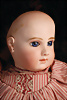 Ein qualitätsvolles und charakterstarkes Beispiel der Pariser Manufaktur von Jules Steiner aus der Hochphase der französischen Biskuitpuppen-Produktion um 1890. Besonders hervorzuheben sind die strahlenden Paperweight-Augen, die feine Bemalung
