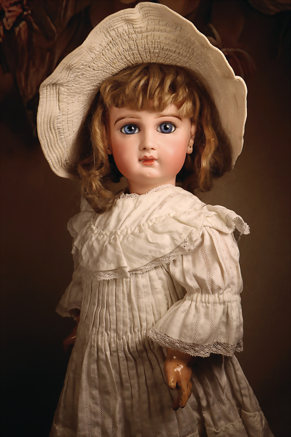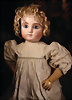 Pia’s Blog: „… was für eine Geschichte: Emile Jumeau hat seinen ehemaligen Mitarbeiter Daniel & Cie, der ihn kopieren wollte, verklagt und diesen Prozess gewonnen. Diese Charakter-ähnliche Puppe ist das Ergebnis, später als Nummer 223 der seltenen und sehr gesuchten Series Fantastique fortgeführt, hier mit einer besonders gelungenen tiefen Modellierung, wodurch der besondere Ausdruck perfekt zur Geltung kommt…“