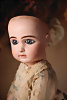 Pia’s Blog: „...Obwohl mit der Bezeichnung „Tête Jumeau“ versehen, ähnelt das Gesicht in seiner zarten, beinahe schüchternen Ausstrahlung stärker dem unmittelbar vorausgehenden, eingeritzten „Déposé“-Modell. Dieses Exemplar gilt daher als seltenes und gesuchtes Übergangsmodell innerhalb der Jumeau-Produktion um 1886..."