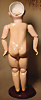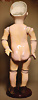 Charmantes Googly, Modell 323, um 1920, von Armand Marseille, kleines Googly mit fein gearbeitetem Biskuit-Porzellan-Kopf, blaue seitlich blickende Glasaugen, zart gemalte Wimpern, einfache, schwungvoll ausgeführte Einzelstrich-Brauen, geschlossener Mund leicht lächelnd, angedeutete Grübchen, charakteristischen Schelmen-Blick, den Sammler an diesen Puppen besonders schätzen, 28 cm, originaler Toddler-Körper in sehr guten Zust. Markierung: „Armand Marseille Germany 323 A 4/0 M“, Provenienz: " Sammlung Gerda Ott "
