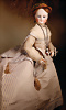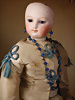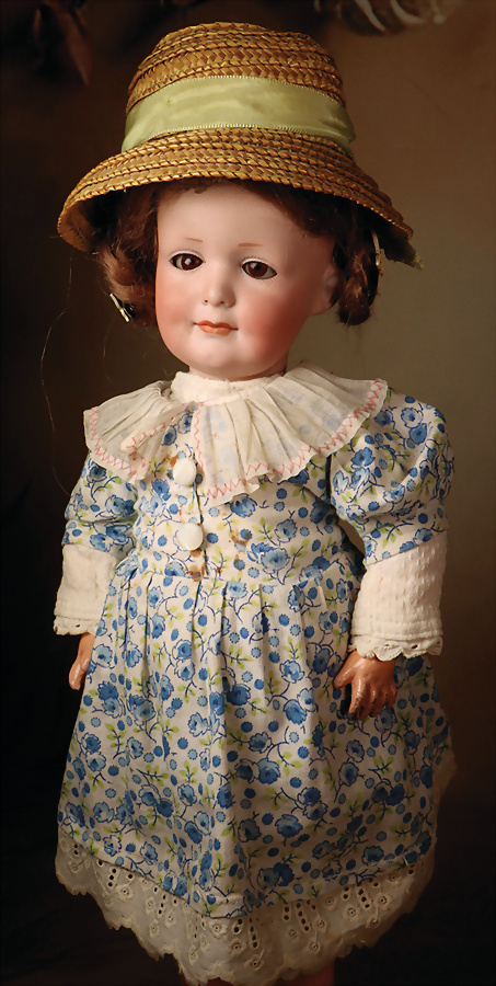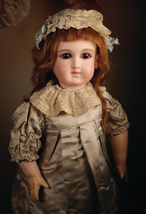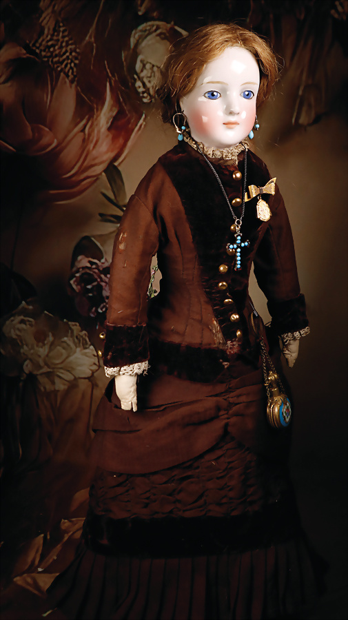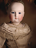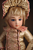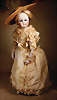 Pia`s Blog:,,...die „Poupée de Mode“ durchlief in ihrem Aussehen einen Wandel. Die eher strengen Aussehen der 1860er Jahre wandelten sich hin zu weicheren, lieblicheren Gesichtern. Diese Puppe ist ein exemplarisches Beispiel für eine späte Mode Puppe. Durch den in diesen späteren Jahren neu aufkommenden Kurbelkopf lässt sich der Kopf neigen und drehen und kann daher einen menschlicheren Ausdruck erzeugen. Die Köpfe wandelten sich zusätzlich hin zu „verjüngten“ Gesichtszügen die schon an die später aufkommenden Bébés erinnern. Diese Puppe vereint den Haut-Couture-Charakter der klassischen Modepuppe mit der emotionalen Wärme der späteren Bébés. Diese Puppe stellt mit seinem Enfantine-Look (franz. enfant = Kind) einen besonderen Wendepunkt und Übergang zu späteren Bébés dar...“