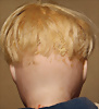 550, Porzellan-Charakter-Puppe, 38 cm, Porzellan-Kurbelkopf, braune Schlafaugen (Puppe hat einen Silberblick), geschl. Mund, Gliederkörper, Mohair-Perücke
