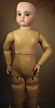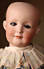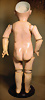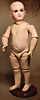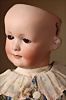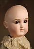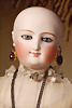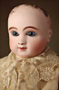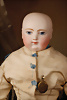 „Le Petit Parisien“ Figure C, Bébé Steiner, Größe 1, Jules Steiner, Paris, um 1889, 41 cm, Porzellankopf-Puppe, weich gerundete Gesichtsform mit ausgeprägt vollen Wangen, gepresster Kurbelkopf, große blaue Glas-Paperweight-Augen von bemerkenswerter Tiefe werden durch dunklen Lidstrich, fein gemalte Wimpern und rosé schattierte Lider, betonter modellierter geschlossener Mund, durchst. Ohren, Ohren fein ausmodell., minim. Fehlstelle am linken Augenlid, franz. orig. Steiner Gliederkörper, 1x übermalt, Papiermaché-Deckel, Perücke stark ausgegangen, feste Handgelenke Zustand: feinster Biskuit-Kopf, zarter Haarriss am Hinterkopf, minimaler Chip am linken Auge