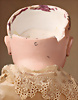 bezaubernde kleine Modepuppe von Ferdinand Gaultier, heller Porzellan-Kurbelkopf, auf Porzellan-Brustplatte, hellblaue fest einges. Glasaugen, fein gemalte Wimpern und Augenbrauen, akzentuierte Nasenlöcher und Augenwinkel, geschlossenen Mund mit akzentuierten Lippen, deutliches Wangen-Rouge, Lederkörper mit geraden Beinen, Biskuit-Unterarmen mit exquisit geformten und bemalten Fingern, altrosa farbende Seidenrobe mit Tournüre, Zustand: insgesamt ausgezeichnet, feinstes helles Biskuit-Porzellan, exquisite Bemalung, grandiose Vitrinen-Größe 22 cm, Provenienz: '' Zeitlose Eleganz der Modepuppen Ikonen, die Frohnwieser Collection ''