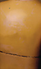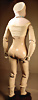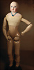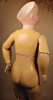 frühe Puppe, 24 cm, Holzkopf mit Rumpf, Lederkörper, Holz-Arme u. –Beine, seitl. u. hinten angedeuteter Zopf, leicht hervortretende Nase, blaue gemalte Augen, auch schöne Deko zu einem frühen Kaufladen