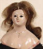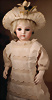 Extrem seltene All-Bisque-Mignonette von Gaultier, um 1875, hellblaue mandelförmige eingesetzte Glasemailaugen, fein gemalte Wimpern, zart gefiederte Augenbrauen sowie betonte Nasenlöcher und Augenwinkel, geschlossener Mund mit konturierten Lippen, durchstochene Ohren, leicht errötete Wangen, auf Porzellan-Körper, bewegliche Arme und Beine, feine filigran ausgearbeitete Finger sowie Füße, 21 cm, originaler Korkdeckel mit Perücke, antikes Kleid Marke: Nackenmarkierung Nr. 6 Zustand: vereinzelt kleinere Chips an der am Hals des Torso sowie an der Beinscheibe, stärkere Ofenstaubeinschlüsse am Körper verteilt, Mini-Abriebstelle an der rechten Wange CH-NR 1011, das Objekt befindet sich im Schweizer Zolllager, für Bieter außerhalb der Schweiz muss ein Versand vorgenommen werden, bei Einfuhr in die EU fallen Zoll, Umsatzsteuer u. Bearbeitungsgebühren an, für Bieter außerhalb der EU gelten die dort üblichen Zollbedingungen, Provenienz: Sammlung ,, Cecilie Juul Møller "